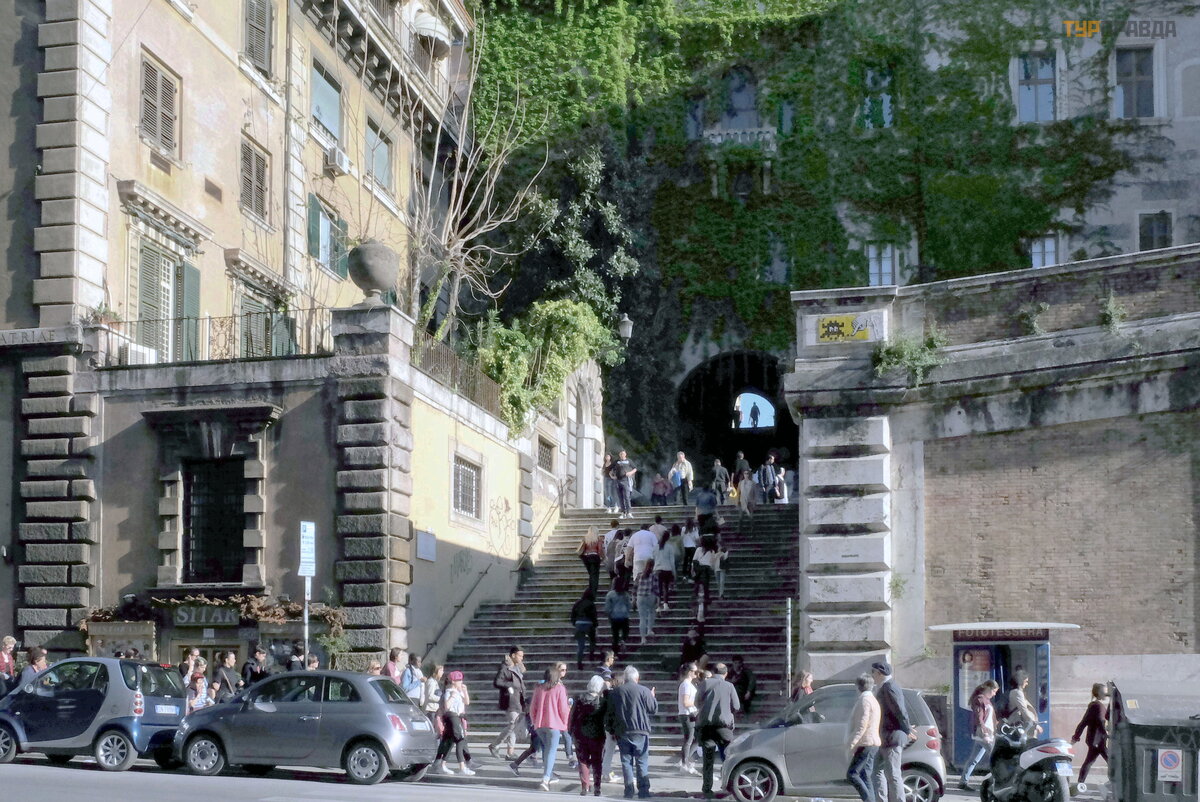 To Schody Borgia, któ re swoją nazwę wzię ł y od domu z ł ukiem, w któ rym mieszkał Rodrigo Borgia (aka Papież Aleksander VI), któ ry urodził mu czwó rkę dzieci.