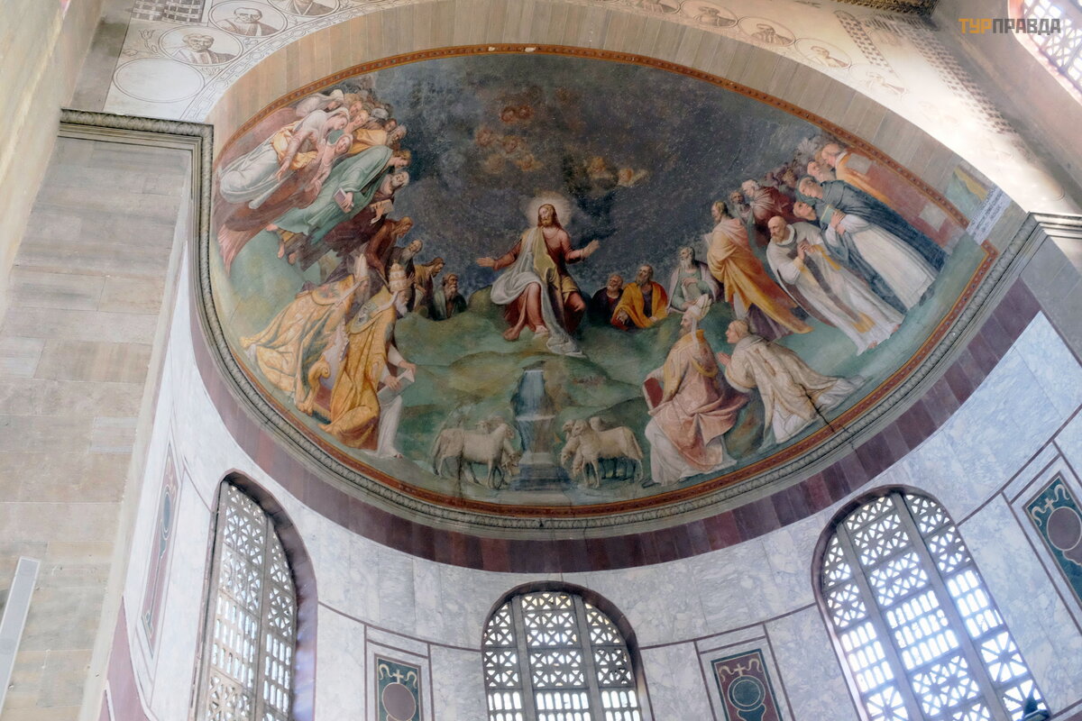 W zakrystii znajduje się fragment wspaniał ej mozaiki „Chrzest”, przeniesionej ze starej katedry ś w. Piotra.