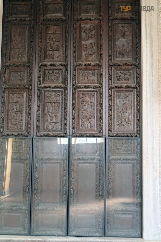 Drzwi z drewna cyprysowego są najstarszymi w Rzymie, w pierwszej poł owie V wieku. Reliefy przedstawiają sceny ze Starego i Nowego Testamentu.