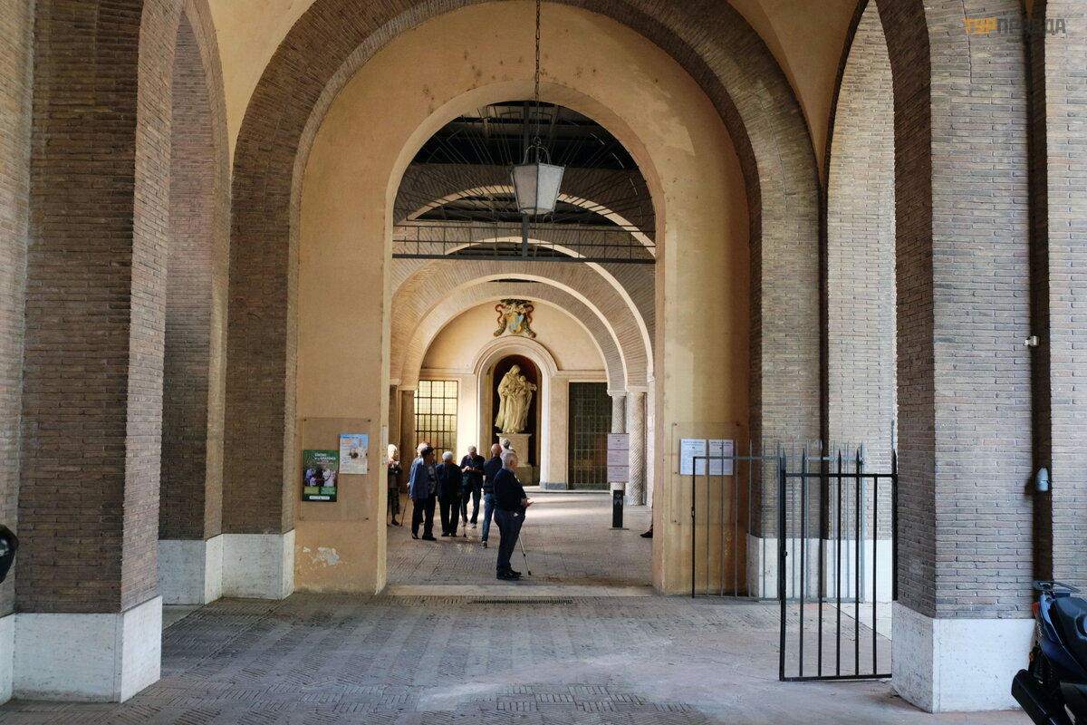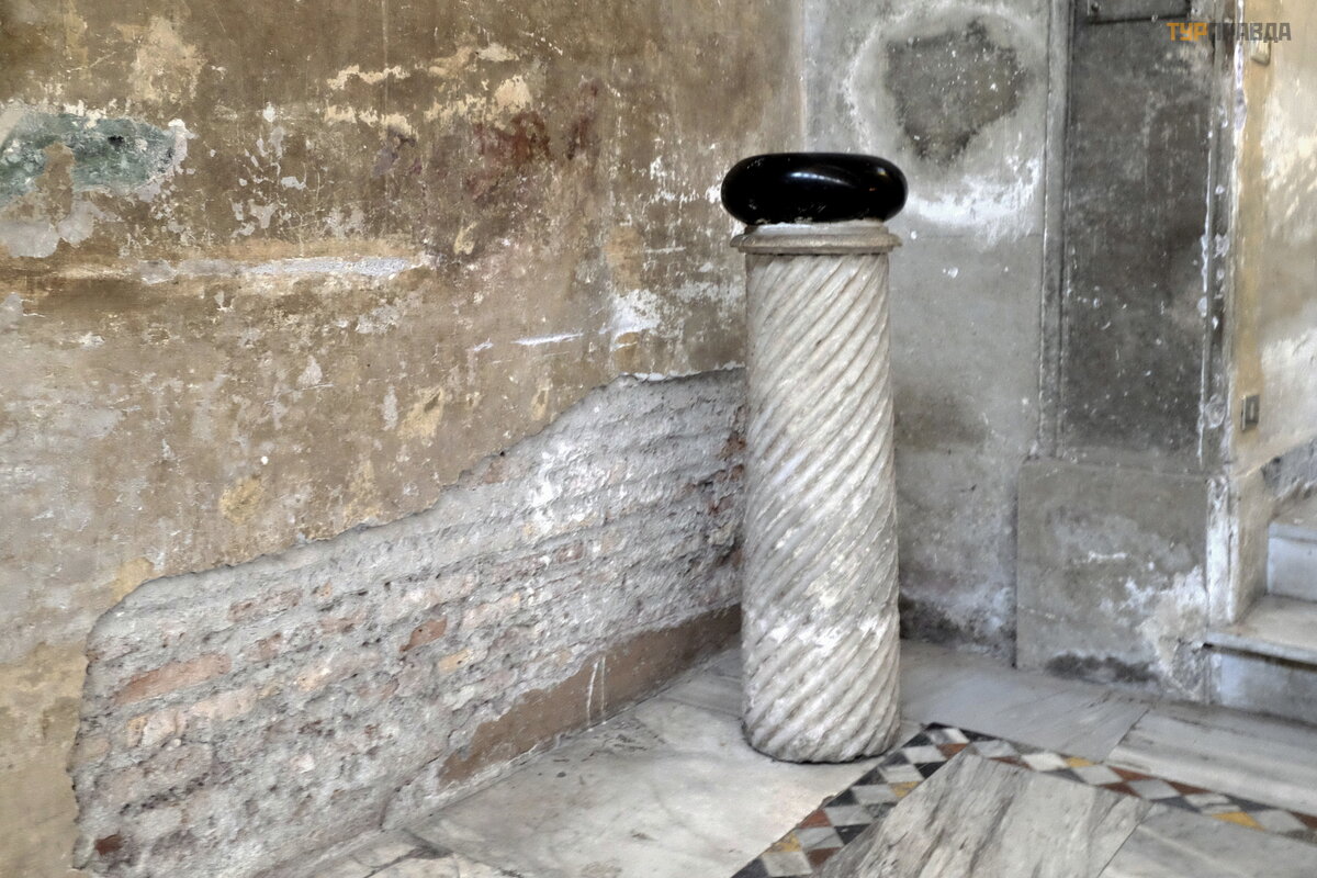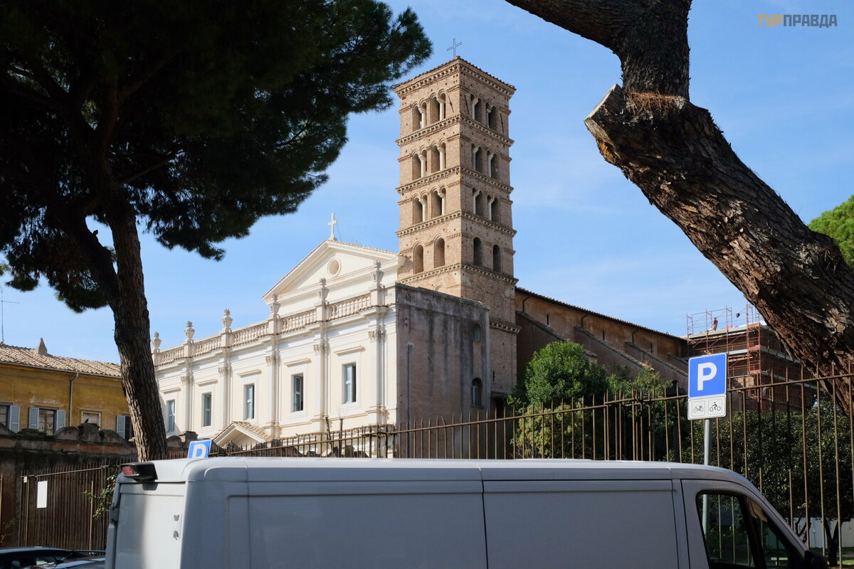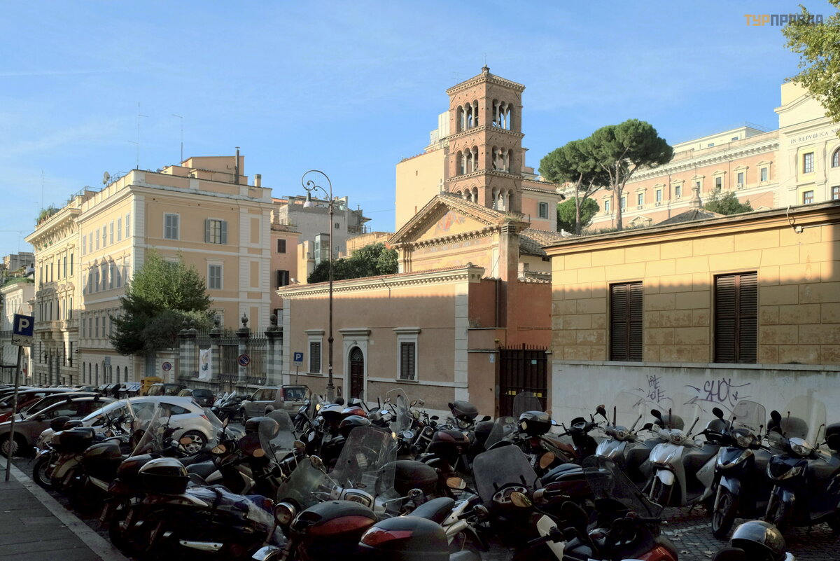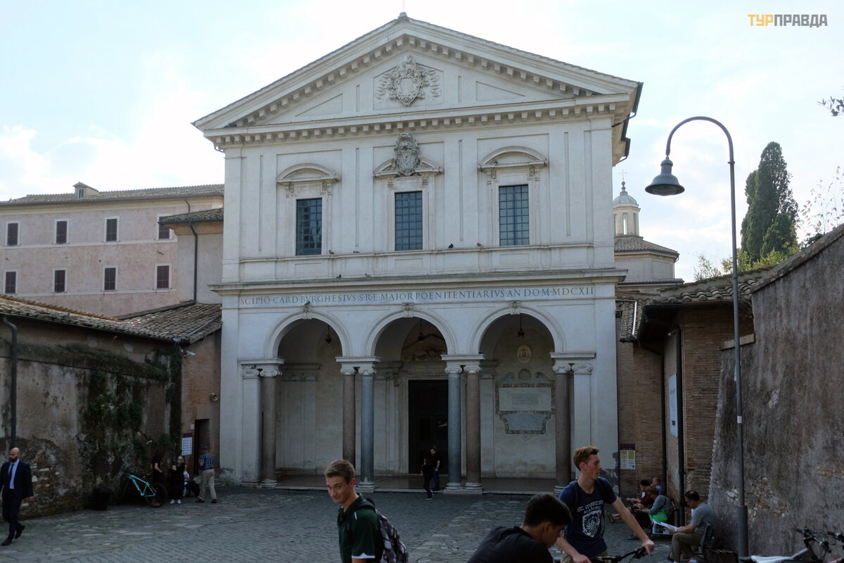 Wchodzimy po schodach na plac, na któ rym znajduje się koś ció ł San Pietro in Vincoli (San Pietro in Vincoli ) , czyli „Piotr w kajdanach”.