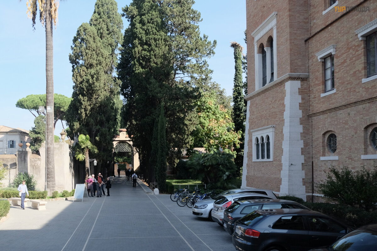 Po lewej stronie placu znajduje się duż y nowy kompleks budynkó w – Papieski Uniwersytet ś w. Anzelma.