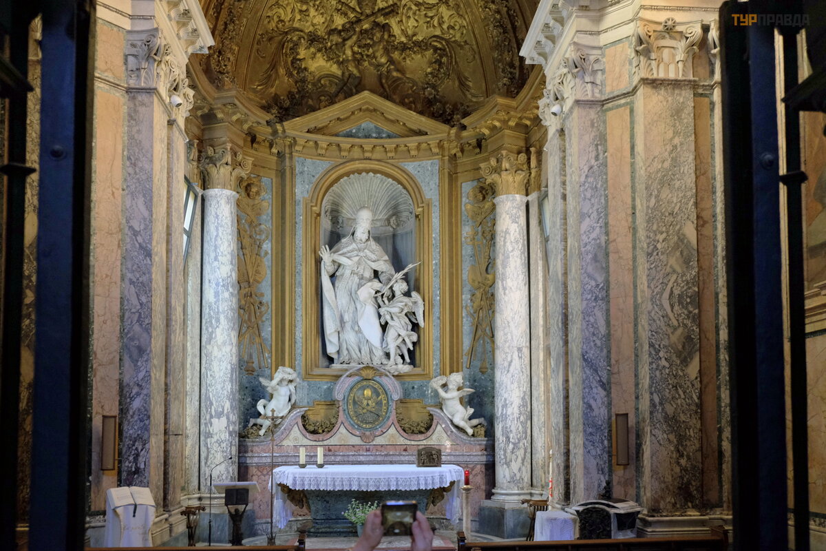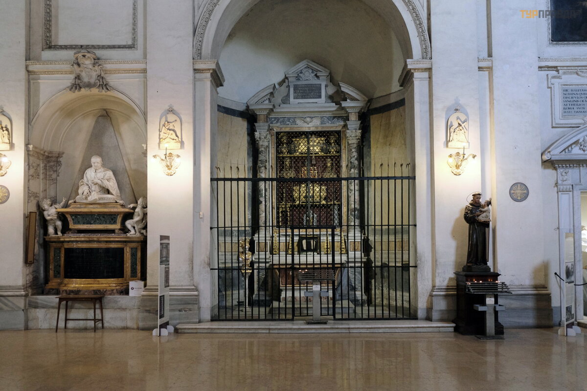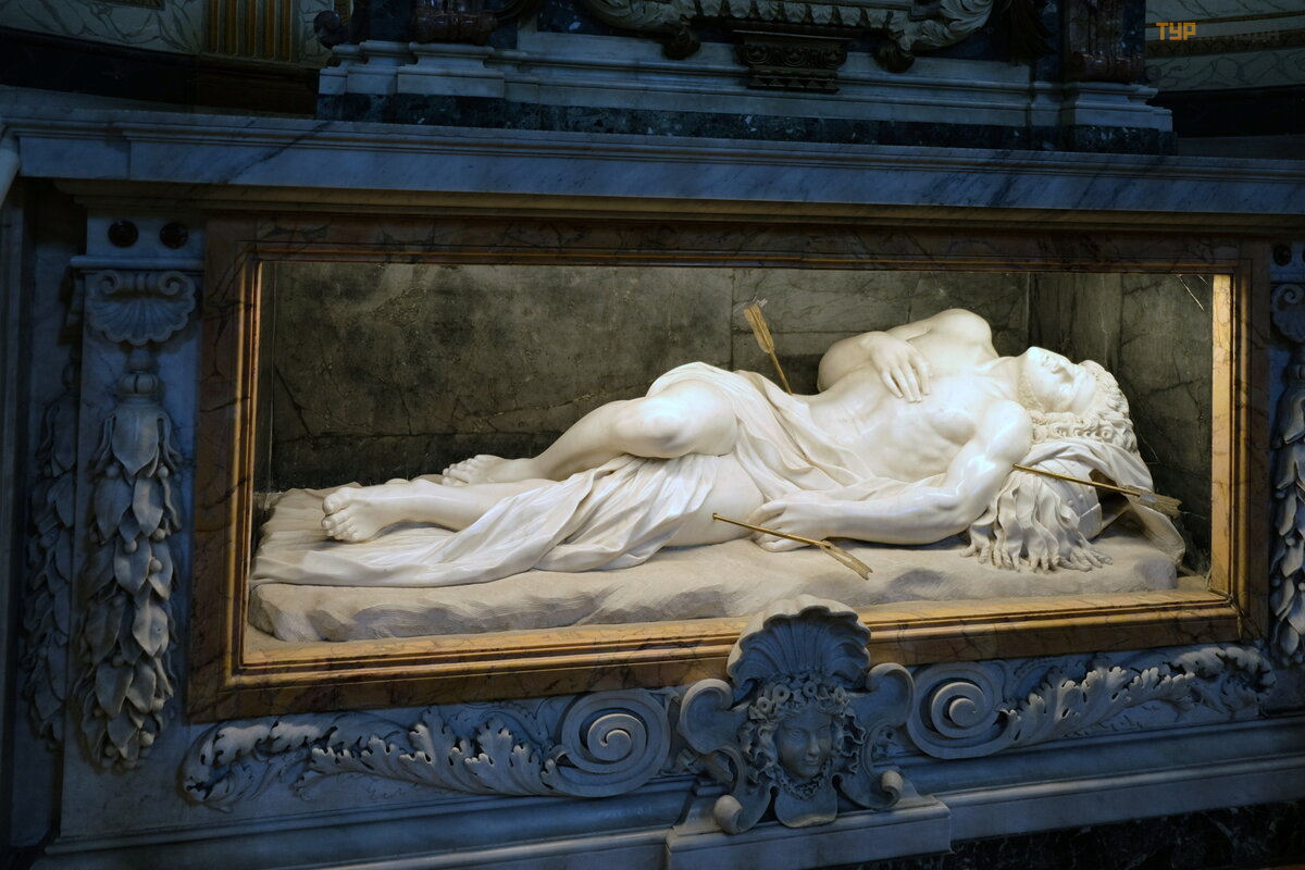 Arcydzieł o autorstwa Antonio Giorgetti (1672), zaprojektowane przez Gian Lorenzo Berniniego. To pomnik nagrobny, któ ry znajduje się pod oł tarzem kaplicy. Interesują ce jest ró wnież wiele elementó w kaplicy, któ re został y przeniesione ze staroż ytnych katakumb.