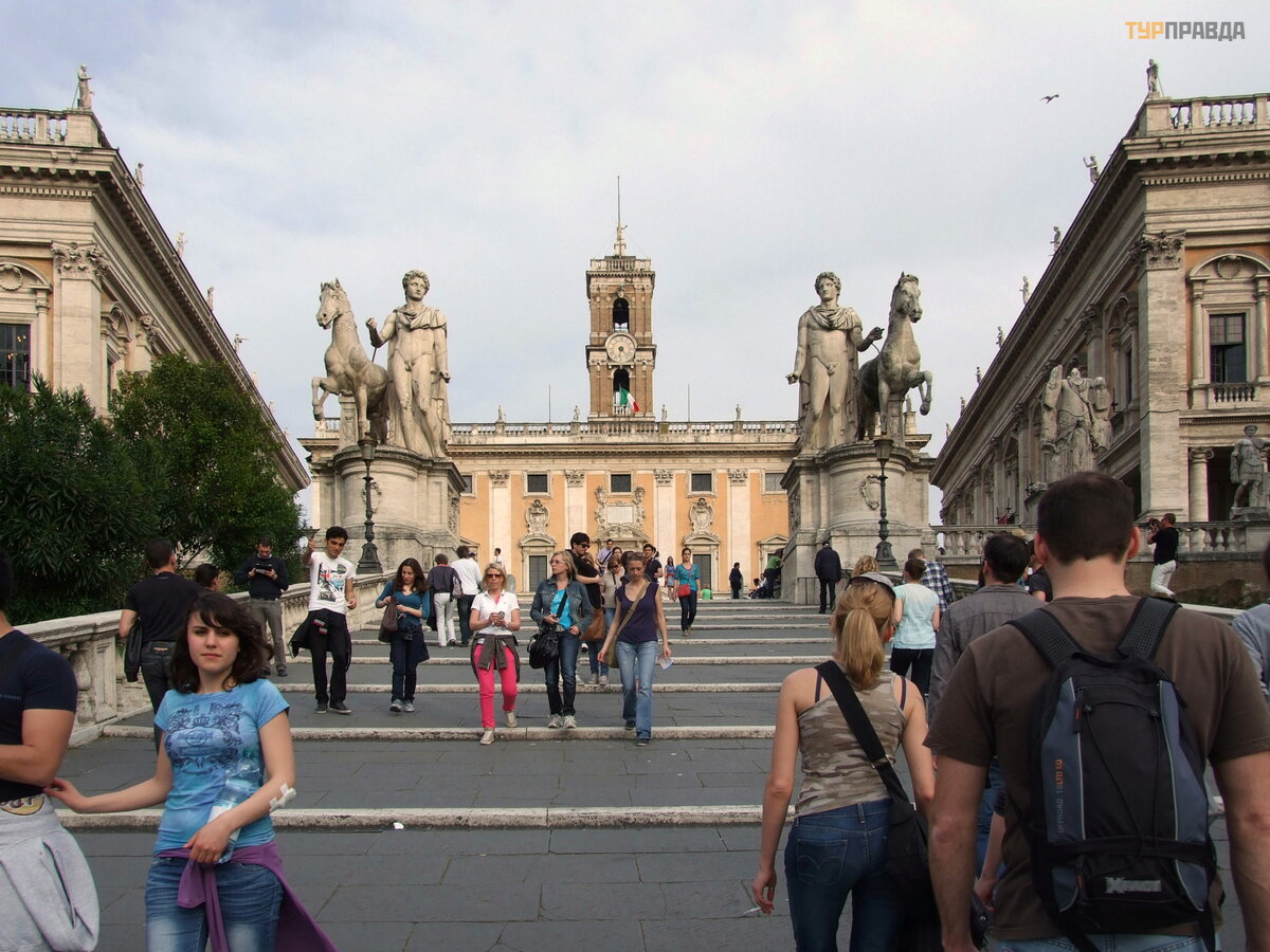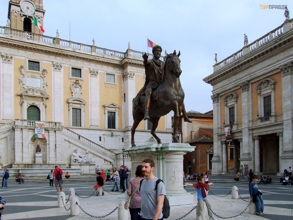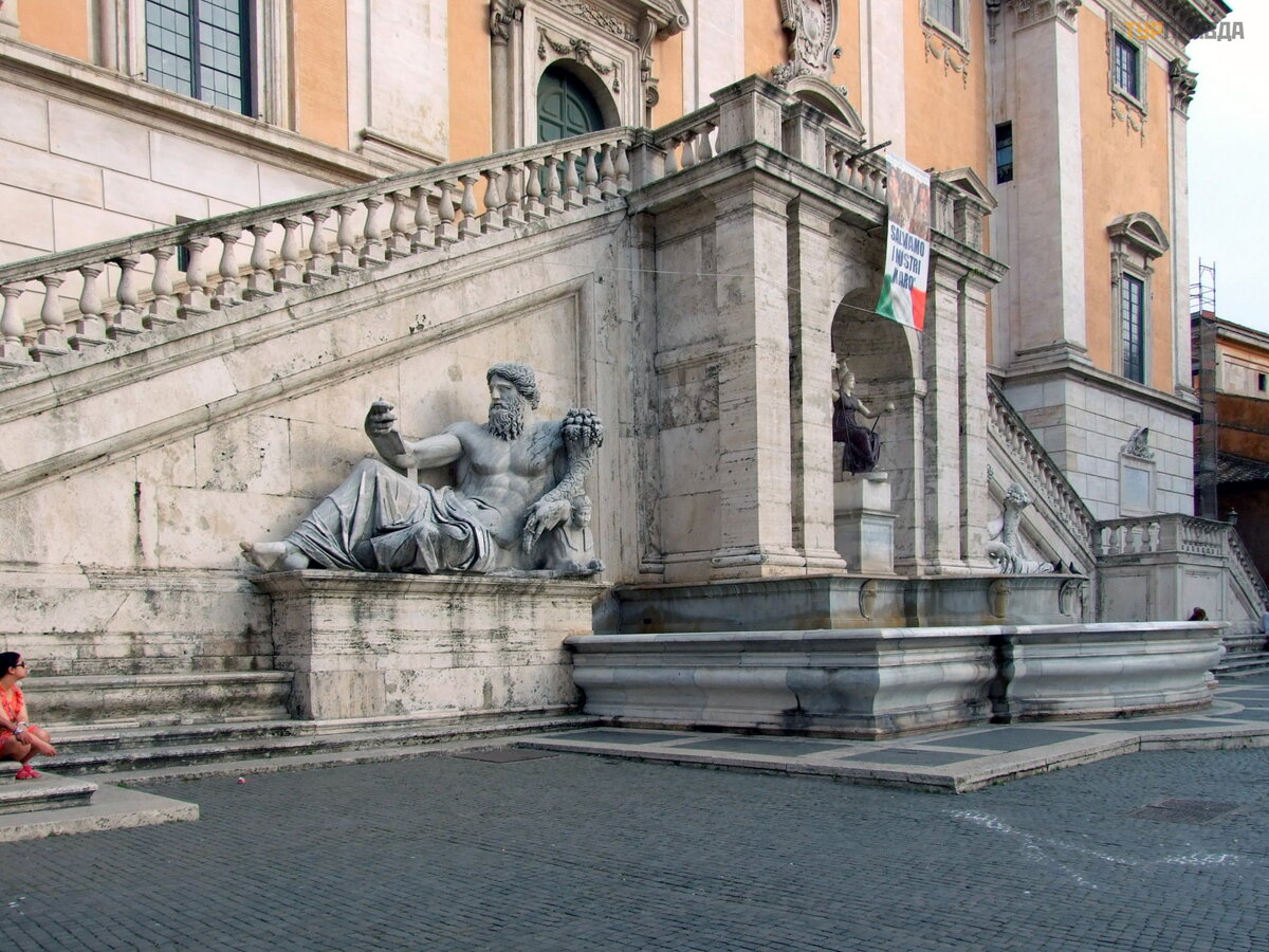 Z drugiej strony po raz kolejny przyjrzeliś my się wspaniał emu kompleksowi budynkó w (Giacomo della Porta, Rainaldi, Cavaliero, Longi) na Placu Capitol, stworzonym wedł ug planu Michał a Anioł a.