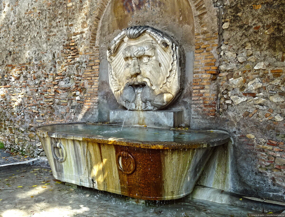 Jego ką piel zachował a się od czasó w staroż ytnych, a maskę przymocowaną do ś ciany wykonał Giacomo della Porta.