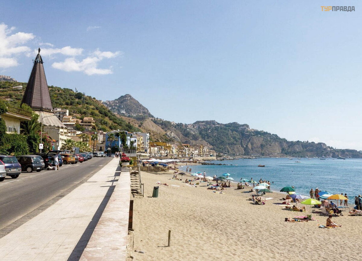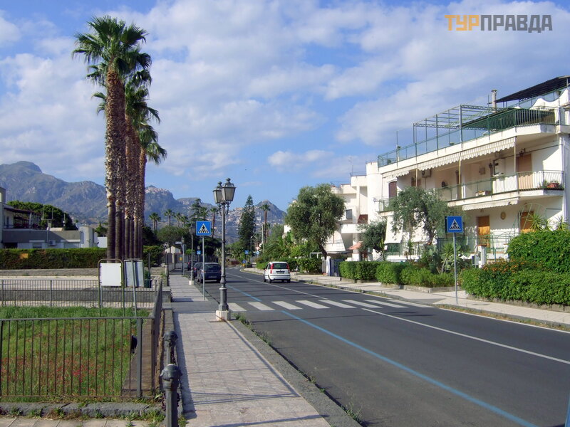 Teraz Giardini Naxos to typowe nadmorskie miasteczko rozcią gają ce się wzdł uż wybrzeż a,