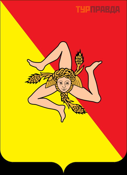 Mió d miejscowy (cytryna i pomarań cza) oraz na pamią tkę symbol Sycylii – „Trinakria”, któ ry pyszni się wszę dzie, takż e na herbie Sycylii. Istnieje wiele teorii na temat obrazu, na przykł ad, ż e symbolizuje on trzy wybrzeż a wyspy. Gł owa Gorgony odpę dza zł o i zamienia je w kamień .