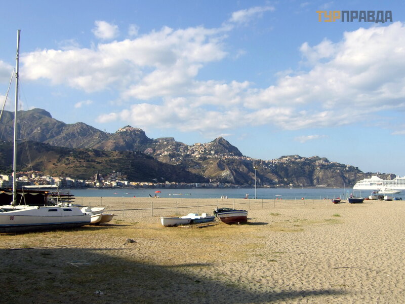 Staroż ytne Naxos był o pierwszą osadą staroż ytnych Grekó w na Sycylii - 735 pne. mi. Trzy wieki pó ź niej, podczas wojen wewnę trznych, miasto został o zniszczone przez Dionizjusza, a mieszkań cy przenieś li się w gó ry, gdzie obecnie znajduje się miasto Taormina, co jest wyraź nie widoczne z wybrzeż a, wysokoś ć gó ry Tauro (Monte Tauro) wynosi 206 m