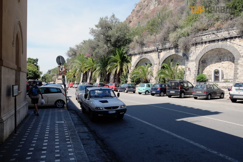 Nastę pnie poszliś my do centrum handlowego Gabbiani z duż ym supermarketem Deco i kupiliś my wina. W mieś cie znajduje się kolejny sklep Deco. W hotelu przynajmniej do kolacji wino gratis, ale tylko do popicia. Na Sycylii jest wiele wysokiej jakoś ci win, któ rych grzechem jest nie spró bować . Nawiasem mó wią c, centrum handlowe jest otwarte bez przerwy na lunch do 21:00. W pobliż u znajduje się parking, na któ rym parkują samochody rolnikó w z produktami. Spotkaliś my tam naszego rodaka, któ ry od 10 lat mieszka na Sycylii.