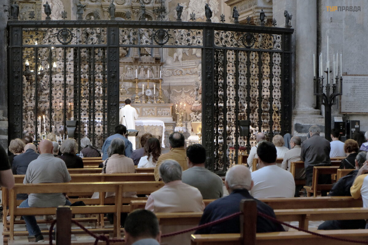 Koś ció ł ś w. Agaty w lochach (Chiesa Cattolica di Sant'Agata al Carcere) został zamknię ty na czas sjesty, zbudowany na miejscu wię zienia, w któ rym zmarł a ś wię ta. Wedł ug legendy ukazał się jej apostoł Piotr i uzdrowił jej rany.