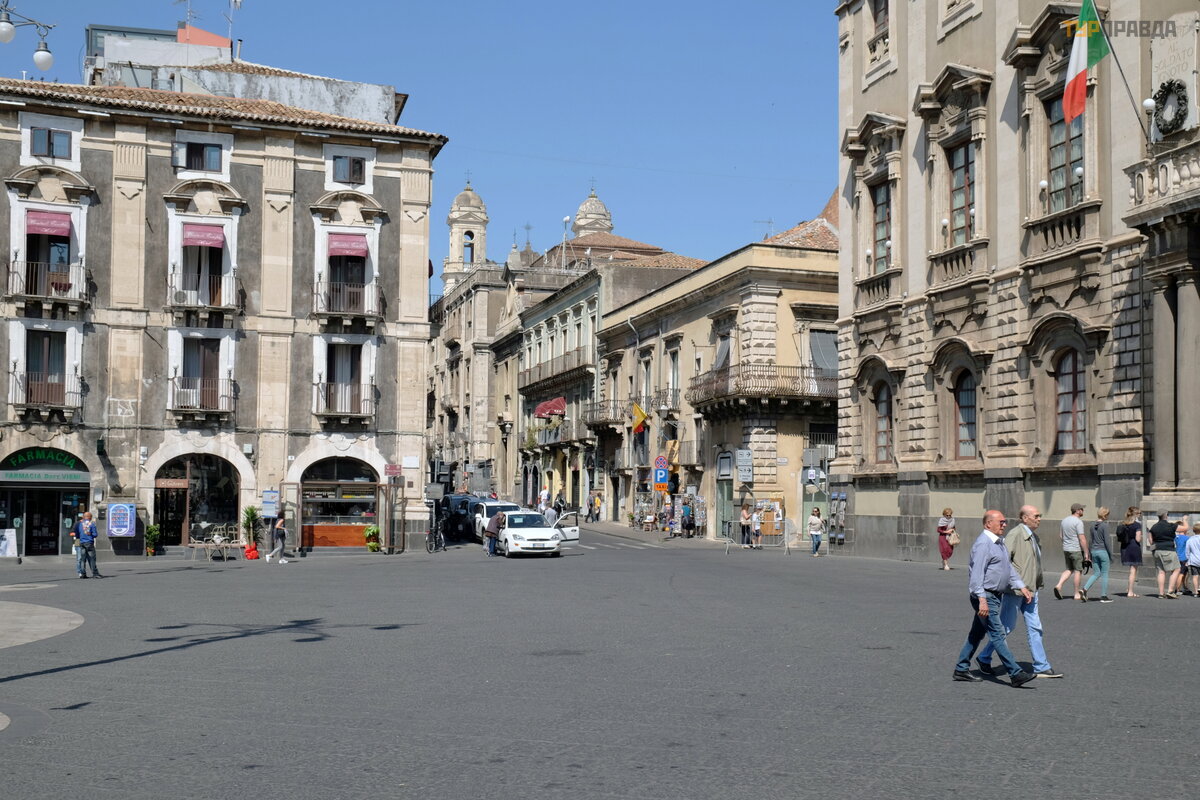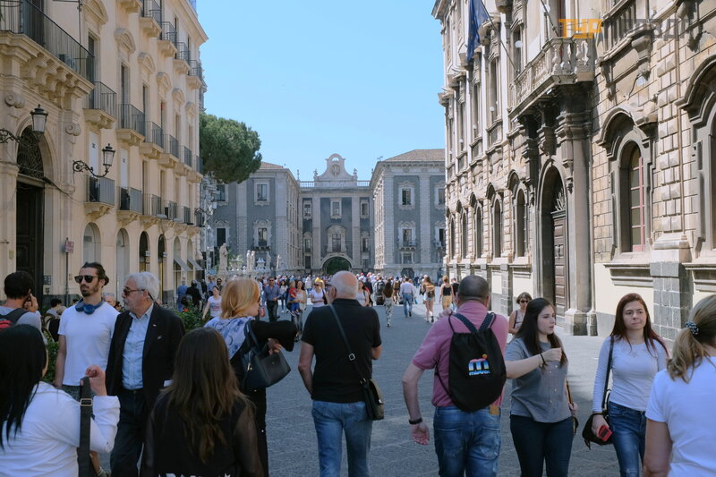 Chodź my na gł ó wny plac Katanii, tutaj Via Etna przecina się pod ką tem prostym z inną centralną ulicą miasta, Via Vittorio Emmanuel II.
