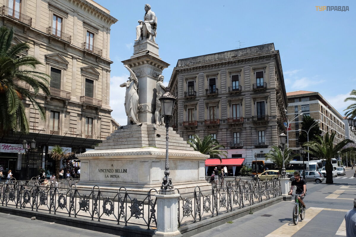 W rzeczywistoś ci zatoczyliś my krą g, docierają c do placu Stesikoro z pomnikiem Belliniego.
