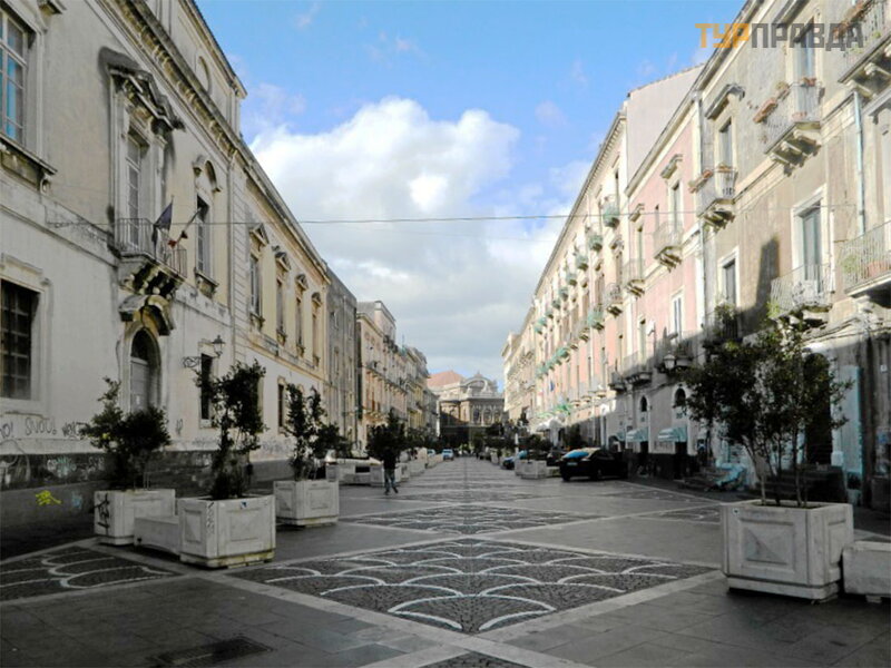 Z dworca autobusowego idziemy gł ó wną ulicą Katanii - Via Etna, któ ra rozcią ga się na 3 km z poł udnia na pó ł noc, peł na zabytkó w, licznych sklepó w i kawiarni. Znajduje się tu ró wnież jedno z najwię kszych centró w handlowych, La Rinascente.