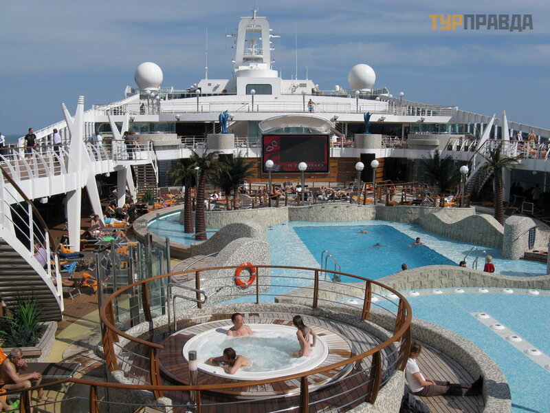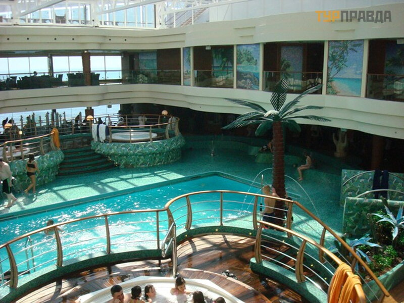 A my, pó ki jest czas, spacerujemy po liniowcu z lś nią cym wyglą dem zewnę trznym i wewnę trznym. Przeszliś my zewnę trznym pokł adem do basenó w centralnych (są otwarte i pod rozsuwanym dachem). Czasem wstawiam nie wł asne zdję cia, ale po to, ż eby był o poł ą czone.