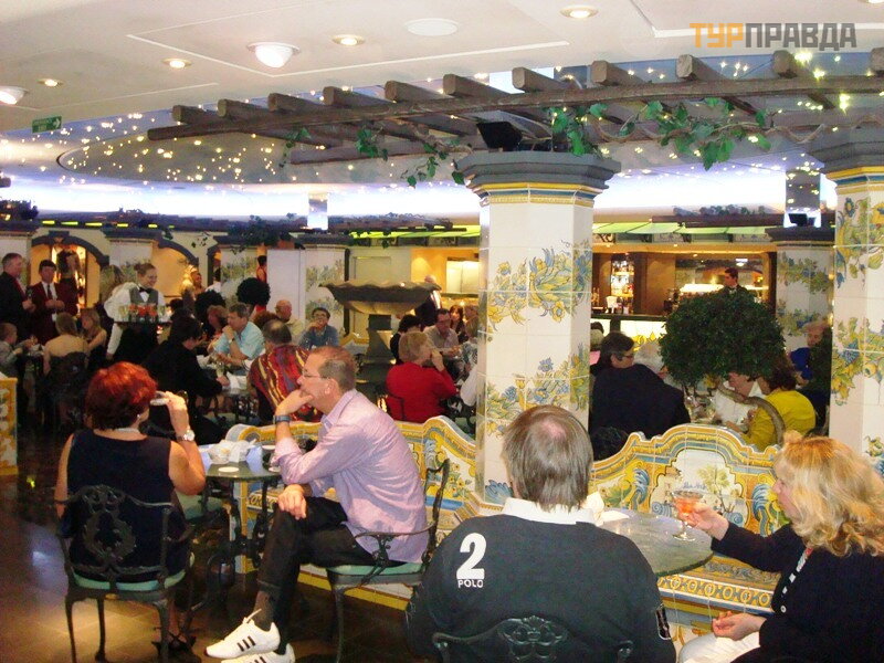Przypomniał o mi się American Voyager, gdzie ulica-promenada był a centralną osią statku, na któ rej znajdował y się w zasadzie wszystkie bary, kawiarnie, sklepy itp. , restauracje (trzy) na rufie, wszystko był o jasne.
