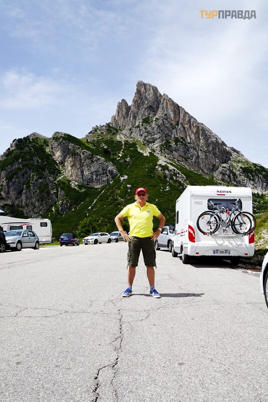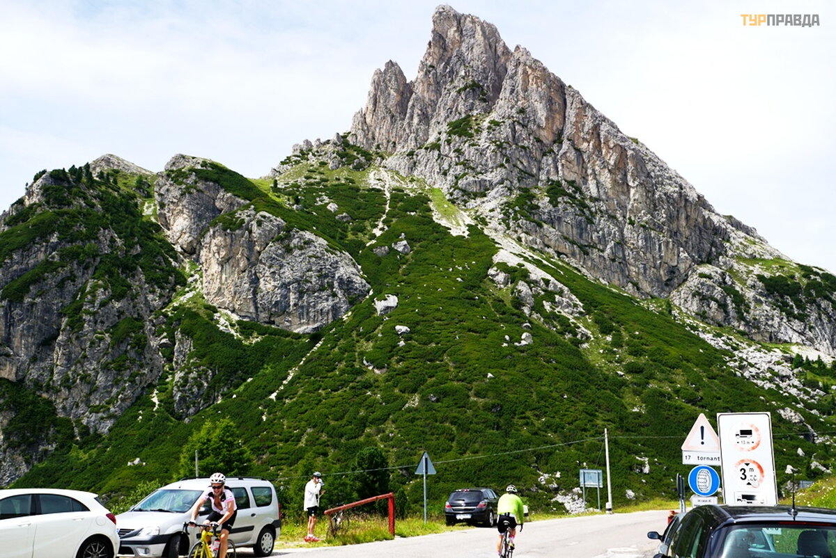 Kiedy do Cortiny di Ampezzo był o okoł o dwudziestu minut, po dł ugim podjeź dzie pod gó rę niespodziewanie wyjechał em na przeł ę cz Falzarego (2117 m). Droga jest wą ska, kto wie, o czym myś li nadjeż dż ają cy kierowca? Moż e jest wł oskim wielbicielem Mary Bagdasaryan, uczestniczki skandalicznego wyś cigu Gelendvagen w Moskwie, wię c jechał z prę dkoś cią.60-70 km. Z gwizdkiem i rykiem wyprzedzili mnie motocykliś ci, któ rzy podró ż ują po Europie w poszukiwaniu przygó d na wł asną rę kę … Z warkotu motocykli miejscowi mó wią , ż e kurczaki przestał y leż eć . Szkoda, ż e istnieją sankcje mię dzy Wł ochami a Rosją , inaczej dostarczalibyś my im jaja kurze z naszej fermy drobiu z Noworosyjska. Nadal podziwiam rowerzystó w. Ja, co, wcisną ł em gaz i odjechał em, a oni cał y czas pedał ują , ż eby wezwać nastę pny przejazd.