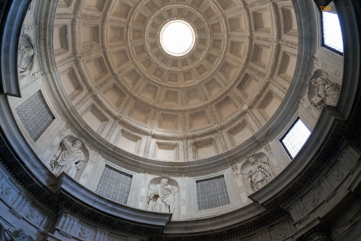 Koś ció ł ma ró wnież kaplicę imiennikó w ulubień có w - kaplicę Caracciolo di Vico z kopuł ą , taką jak Panteon