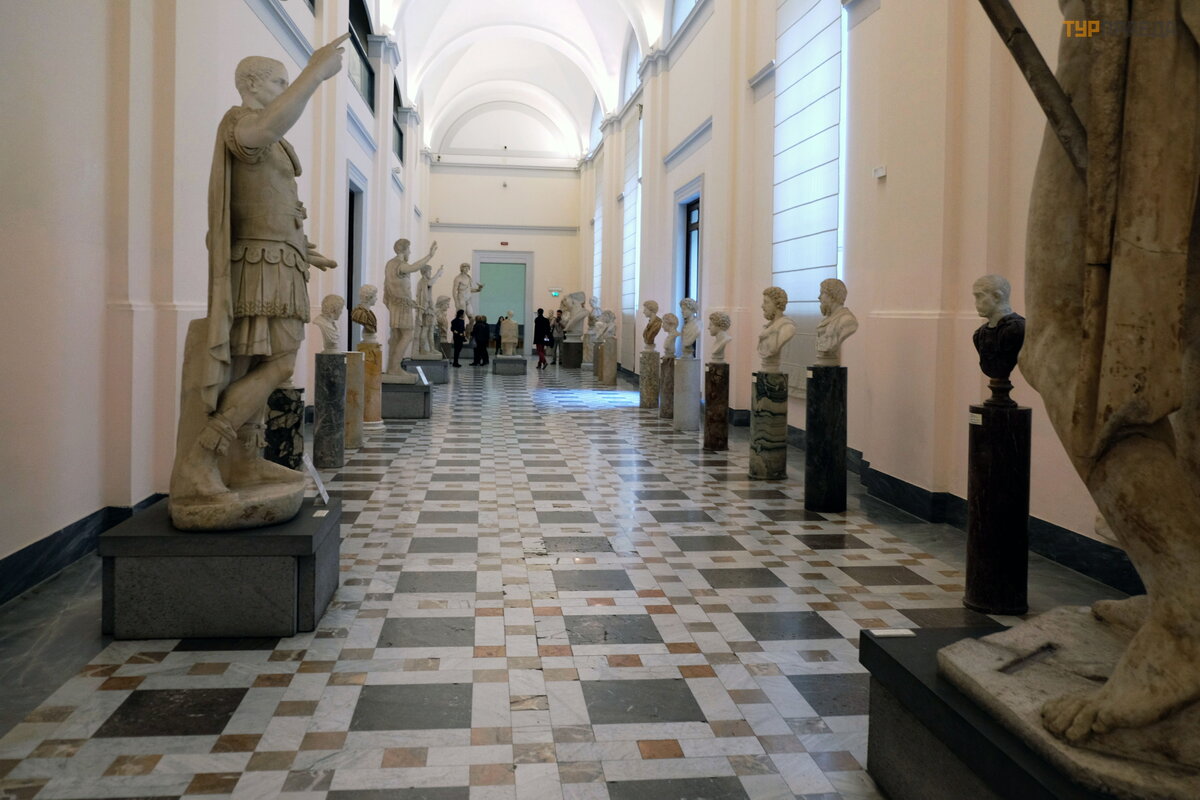 Pó ź niej do muzeum dodano rzymską kolekcję rodziny Farnese (znaleziono ją w zł otym domu Nerona i Ł aź niach Karakalli), a w 1860 roku muzeum stał o się wł asnoś cią pań stwową . W 1957 roku galeria sztuki przeniosł a się do Pał acu Capodimonte. Muzeum posiada ogromną liczbę pię knych dzieł , oto galeria popiersi cesarzy rzymskich