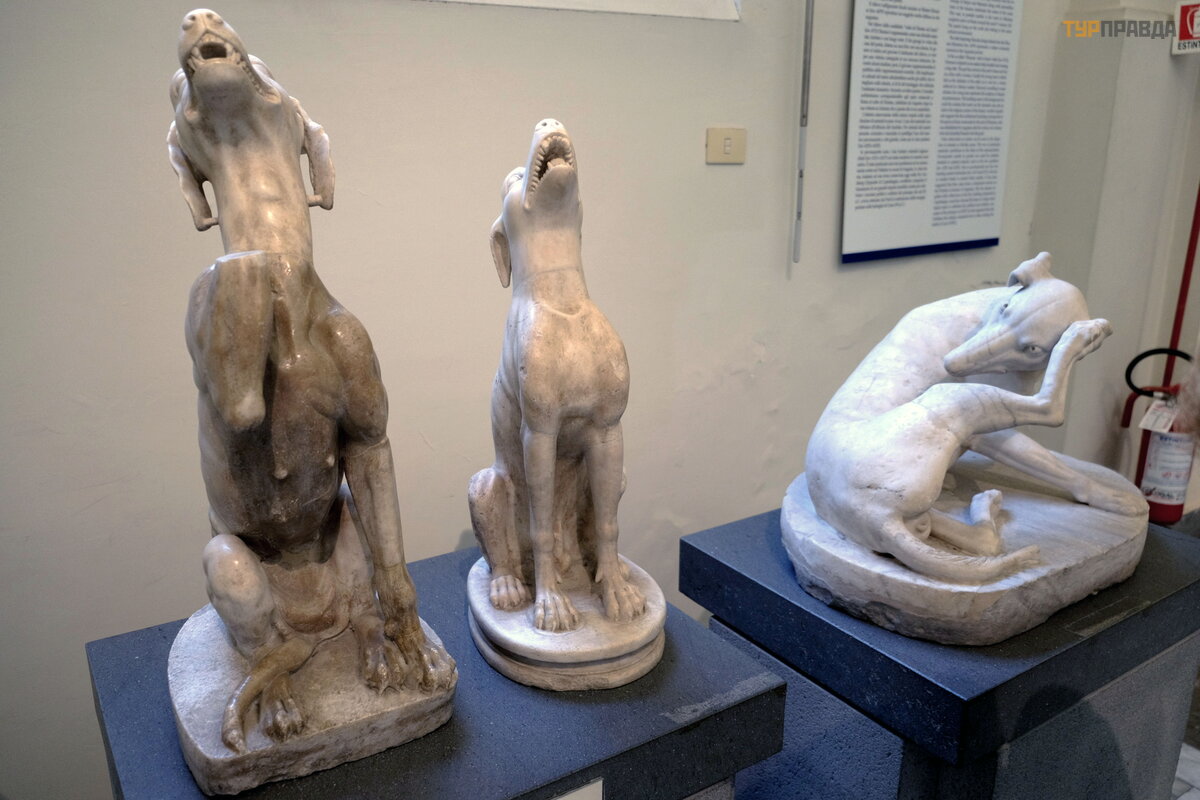 Posą gi są w doskonał ym stanie, pomimo ich zaawansowanego wieku, wiele z nich to kopie greckich posą gó w z brą zu. Na przykł ad sł ynny Herkules z Farnese, III wiek naszej ery. mi. kopia greckiego oryginał u z VI wieku p. n. e. mi.