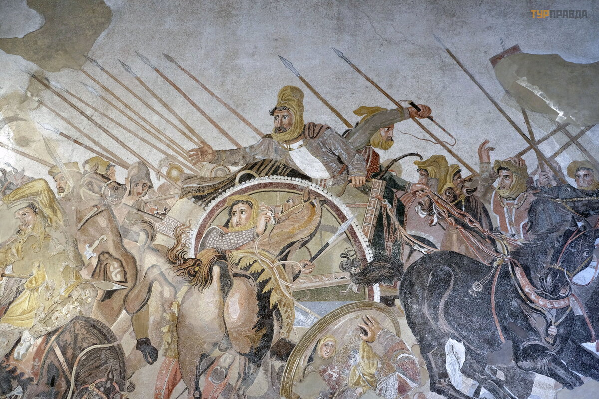Najbardziej znana - „Mozaika Aleksandra” z Pompejó w przedstawia bitwę mię dzy Aleksandrem Wielkim a kró lem perskim Dariuszem III. Mozaika 100 pne mi. rozmiar 313 x 582