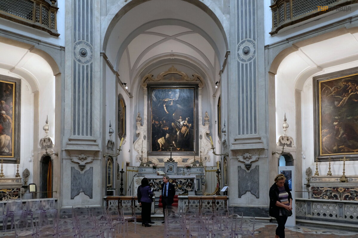 W sześ ciu kaplicach koś cielnych eksponowane są obrazy innych artystó w z XVII wieku: Giordano, Caracciolo, Azzolino, Santafede i Forli.