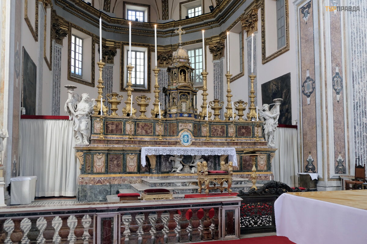 Oł tarz został zaprojektowany przez architekta Cosimo Fanzago w XVII wieku. Jest ozdobiona srebrnymi ż yrandolami i duż ymi wazonami i ogrodzona balustradą z polichromowanego marmuru. Nad oł tarzem znajduje się drewniany krucyfiks z XVII wieku.