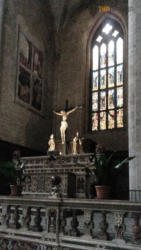 W XIV wieku wzniesiono dzwonnicę , zamontowaną w pierwszej nawie lewej nawy koś cioł a. Wznosi się do 42 metró w.