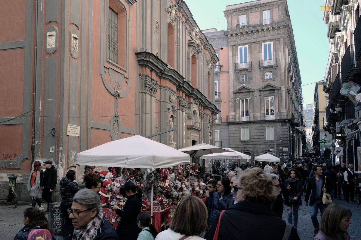 Ale zazwyczaj wszyscy turyś ci natychmiast skrę cają z Via Tribunale na wą ską uliczkę San Gregorio Armeno, któ ra ł ą czy dwa dekumanusy Neapolu: Via Tribunale i Spaccanapoli. Ulica jest peł na presep, boż onarodzeniowych szopek ze wszystkich stron. Tu zawsze jest duż o turystó w.