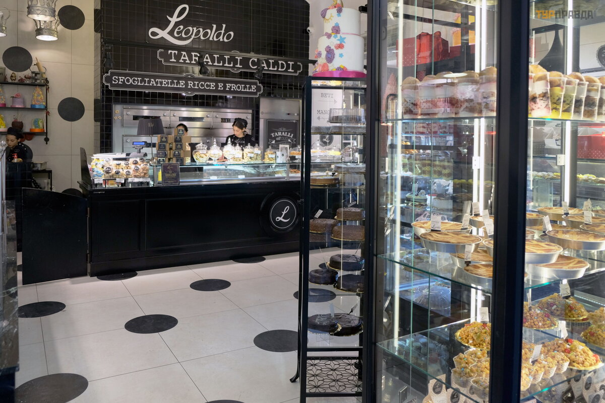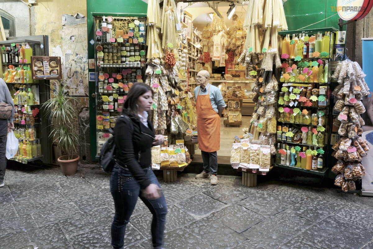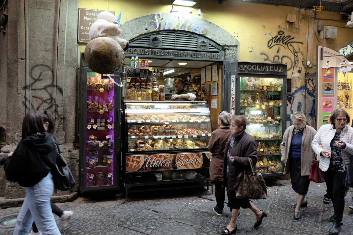 W tej czę ś ci Spaccanapoli ulica jest peł na ró ż nych sklepó w, kawiarni, cukierni.