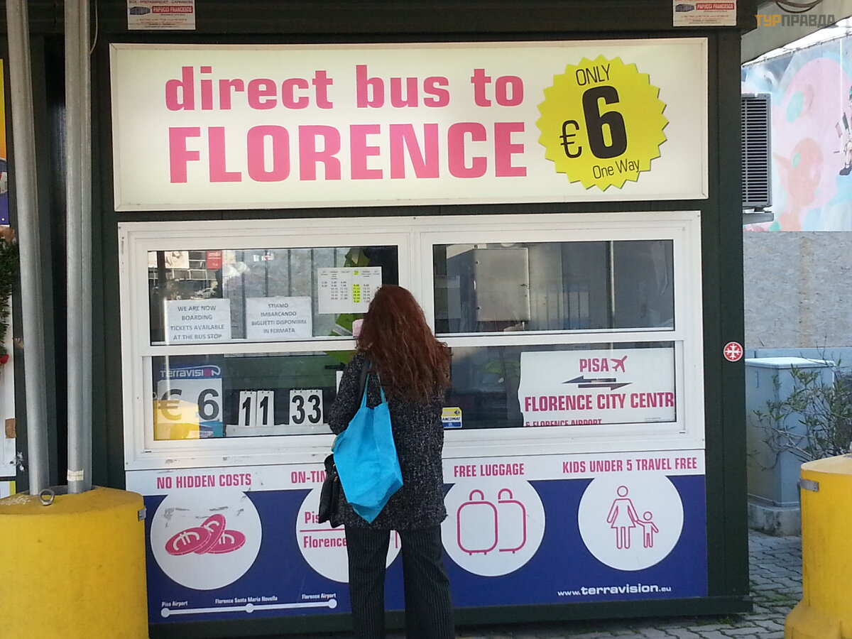 Teraz, gdyby nie fraza „pocią g w peł ni zautomatyzowany”, nie rozważ alibyś my nawet ż adnego rodzaju transportu, ale pojechalibyś my na piechotę . A tu już był o zapł acone - musiał em jechać autobusem. Nie dostarcza do budynku stacji, zatrzymuje się po przeciwnej stronie w poprzek toró w. Przejś cie jest pod ziemią , wię c nie musisz skakać po torach. O to mi chodzi, jeś li nagle musisz jechać prosto z lotniska do Florencji, to ł atwiej w autobusie, któ ry odjeż dż a bezpoś rednio z lotniska i za jedyne 6 euro.