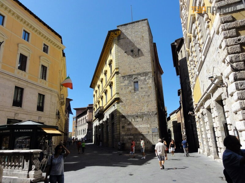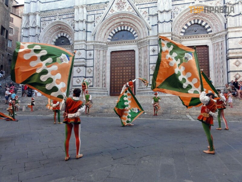 Przewodniczka, mł oda, gł oś na Wł oszka Daniela, któ ra dobrze mó wi po rosyjsku, doś ć szczegó ł owo opowiedział a historię miasta, o pierwotnym podziale na dzielnice - contradas, o zwierzę tach - symbole poszczegó lnych dzielnic, o corocznych wyś cigach.