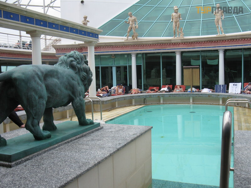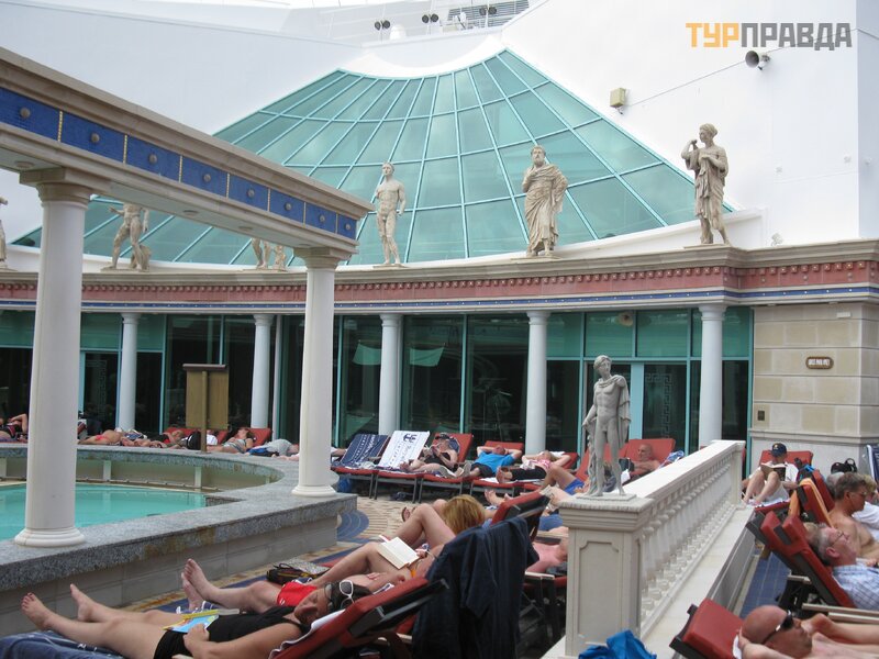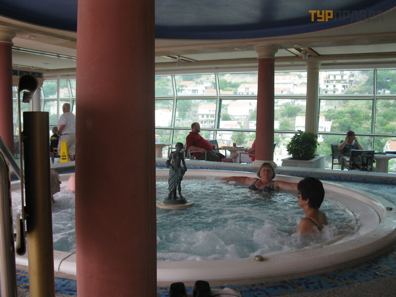 Trasa jest tak zaprojektowana, ż e rano na pewno bę dziemy w porcie - Koper, Rawenna, Bari, Dubrownik, tylko raz dziennie przeprawiają c się przez Adriatyk, ale był taki program rozrywkowy na pokł adzie, któ rego nikt nie przeoczył . Przy basenie zorganizowano ró wnież koncert muzykó w z Portoryko, konkursy, stoliki z posił kami, owocami, napojami i sł odyczami. To dodatek do zwykł ych napojó w - kawy, herbaty, lodó w (któ re są zawsze do pó ź nego wieczora). Na statku znajdują się dwa baseny z wodą morską , są też cztery jacuzzi,