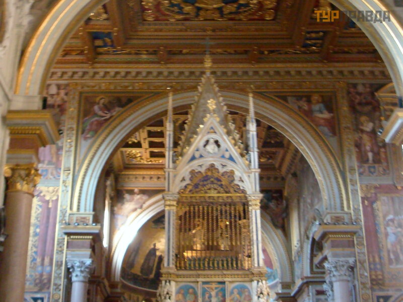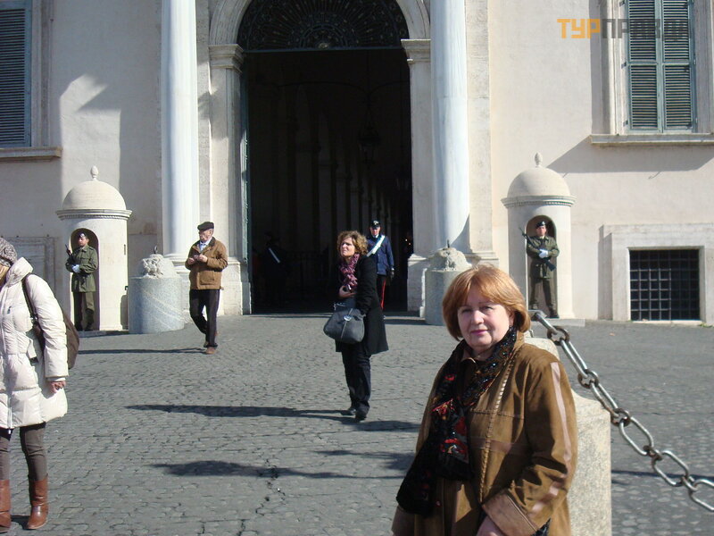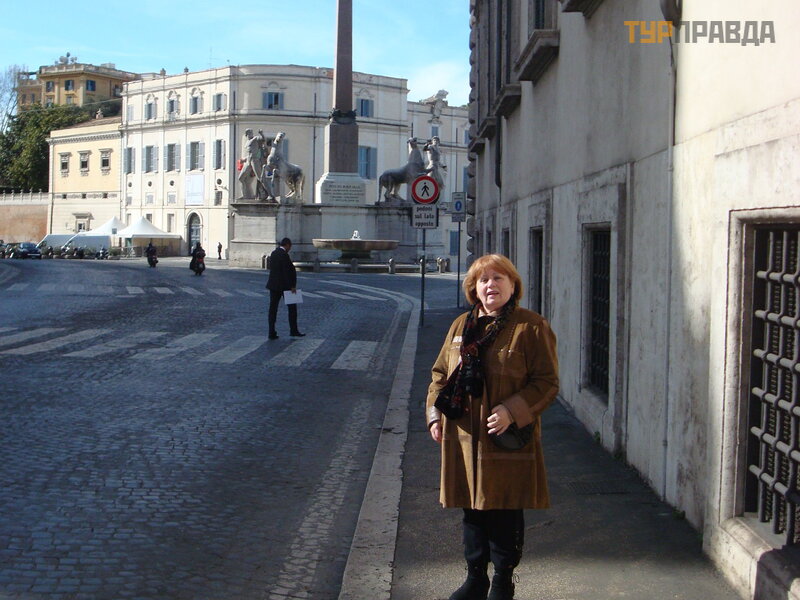 Rano postanawiamy, ż e i tak pojedziemy, wynajmiemy ś wią tynię , w któ rej przemawiał tata. Bardzo podobał a mi się tamtejsza architektura. Oczywiś cie nie liczył em, ż e bę dzie jakiś blask z wizyty papież a, ale… nie ma już dostę pu do miejsca, gdzie rano usiedliś my na ł awkach (pł ot). Jestem teraz dumna, ż e był am tam, doką d nie dotarł jeszcze ż aden turysta, a pojechał am z tatą . Znowu wyszliś my do obelisku, sł yszę rosyjską mowę , pytam przewodnika o ten feralny postó j, odpowiada - tam, naprzeciw cienia obelisku, wskazuje palcem. Znowu duma! Ż aden z Wł ochó w nie mó gł tego wskazać , ale Rosjanin mó gł ł atwo, a nawet w przenoś ni. To prawda, wczoraj był o już za pó ź no i ten cień po prostu nie istniał . Kró tko mó wią c, wsiedliś my do tego autobusu 81 (tu trzeba jeszcze znać kierunek, inaczej zawiezie Cię w zł e miejsce), omijamy Koloseum, Palatyn, nie wysiadamy, bo wszystko widać z okno autobusu - staroż ytne rzymskie ś wią tynie, w tym samym koś ciele - usta prawdy. Jedziemy do budynku wyż szej izby wł oskiego parlamentu (Palazzo Madama).