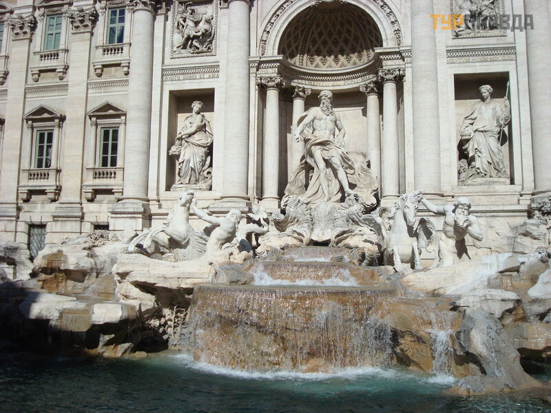 Schodzimy na prawo od bariery tarasu widokowego i idziemy do Fontanny di Trevi. Fontanna pojawił a się w wielu filmach, w wielu magazynach i przewodnikach, ale. . . jest pię kna.