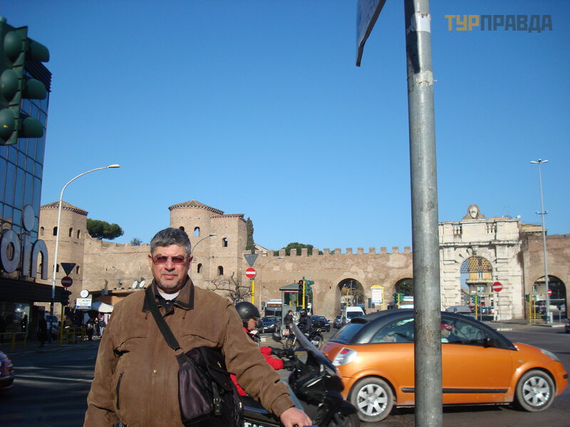 Kró tka przerwa bez sennoś ci, planujemy kolejną trasę z wizytą w rzymskim metrze i w kierunku San Giovanni, gdzie zaczyna się Via Appia i znajduje się koś ció ł San Giovanni. Aparat pozostaje w domu, wię c nie ma zdję cia rzymskiego metra, ale był em w metro w Moskwie, Barcelonie, Leningradzie, Kijowie i gorszego metra nie widział em. Mó wią , ż e trudno go tam poł oż yć , ale wyglą da jak bezdomny. Wysiadamy na przystanku autobusowym, przechodzimy przez Bramę Apianską (pozostał oś ci staroż ytnego rzymskiego muru).
