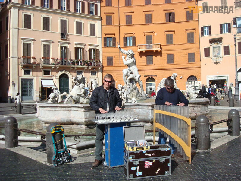 Na placu znajduje się staroż ytny egipski obelisk, któ ry ma 3500 lat, dokł adnie taki, jaki widział em w Luksorze w ś wią tyni Karnati. Prawie każ da ś wią tynia ma obeliski podobne do tej, wię c ile z nich został o wyję tych, a ile skopiowanych. Pytanie jest z pewnoś cią interesują ce. Nastę pnie planujemy wsią ś ć do autobusu 81 do najpię kniejszego placu w Rzymie, Piazza Navona, ale nikogo o to nie pytam, nikt nie zna przystanku tej trasy, nawet carabinieri, któ rzy wypę dzili arabskich kupcó w ze ś wią tyni. Myś lę , ż e winny był mó j angielsko-rosyjski ję zyk z zaporoskim akcentem. Przyznam się , ż e nie uż ywał em wulgarnego ję zyka, ję zyka migowego i dostę pna mapa też nie pomogł a. W dó ł ulicy zobaczyliś my w oddali ruiny Koloseum, bezpiecznie do niego dotarliś my. Był o już za pó ź no, ruiny wyglą dał y na oś wietlone. Dalej pobież na inspekcja ruin foró w cesarskich, kró tki odpoczynek dla deptanych stó p i znó w jesteś my na Piazza Venezia. Có ż , Wenecja przycią ga mnie nawet w Rzymie. Już jadą c autobusem, przypomniał em sobie, ż e niedaleko Koloseum w koś ciele San Pietro in Vincoli, w skrajnym prawym rogu, planowano obejrzeć rzeź bę Mojż esza autorstwa Michał a Anioł a, a przy oł tarzu kajdany (vincoli) Ś wię ty Piotr. Zepsuty.
