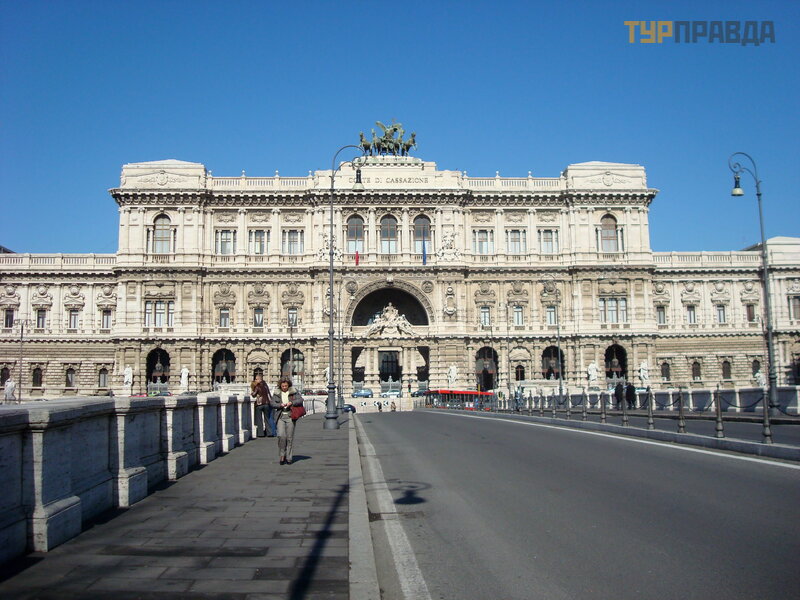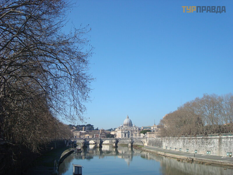 Wcią ż jest wcześ nie. Okolica nie jest oblegana przez turystó w, muzykó w, artystó w malują cych obrazy, cał y wernisaż . Zajrzeliś my do koś cioł a, za co nam dzię kował a drobiazgami, oddaliś my jej drobiazg, nawet daliś my euro, bo przecież pienią dze stał y się „ś wię te”. Spacerowaliś my po placu, oczywiś cie sesja zdję ciowa jest koniecznoś cią . Nastę pnie kierujemy się w stronę brzegó w Tybru na nasyp. Po przeciwnej stronie Pał acu Sprawiedliwoś ci usuwamy pał ac z mostu, widok na Katedrę ś w. Piotra.