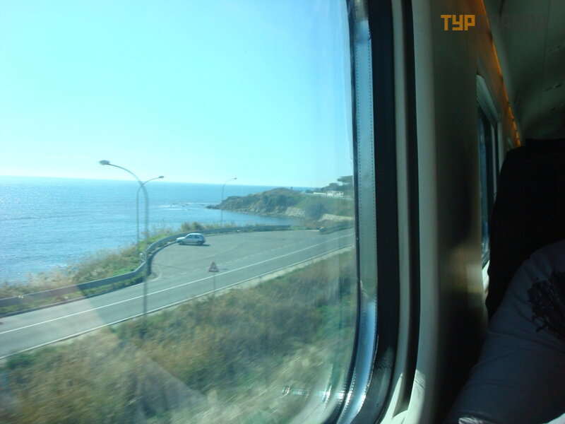 Przed 12-00 jesteś my w hotelu, dotarcie na dworzec zajmuje 5 minut, pocią g pospieszny był obsł ugiwany na czas, a teraz przedmieś cia Rzymu migoczą za oknem, potem pocią g pospieszny jedzie wzdł uż morza , subtropikalna roś linnoś ć cieszy kolorami, Civitavecchia przelatuje obok (tam, gdzie zatrzymują się statki wycieczkowe), znowu tunele, czasami widać mię dzy nimi wybrzeż e Morza Liguryjskiego. Wybrzeż e przypomina poł udniowe wybrzeż e