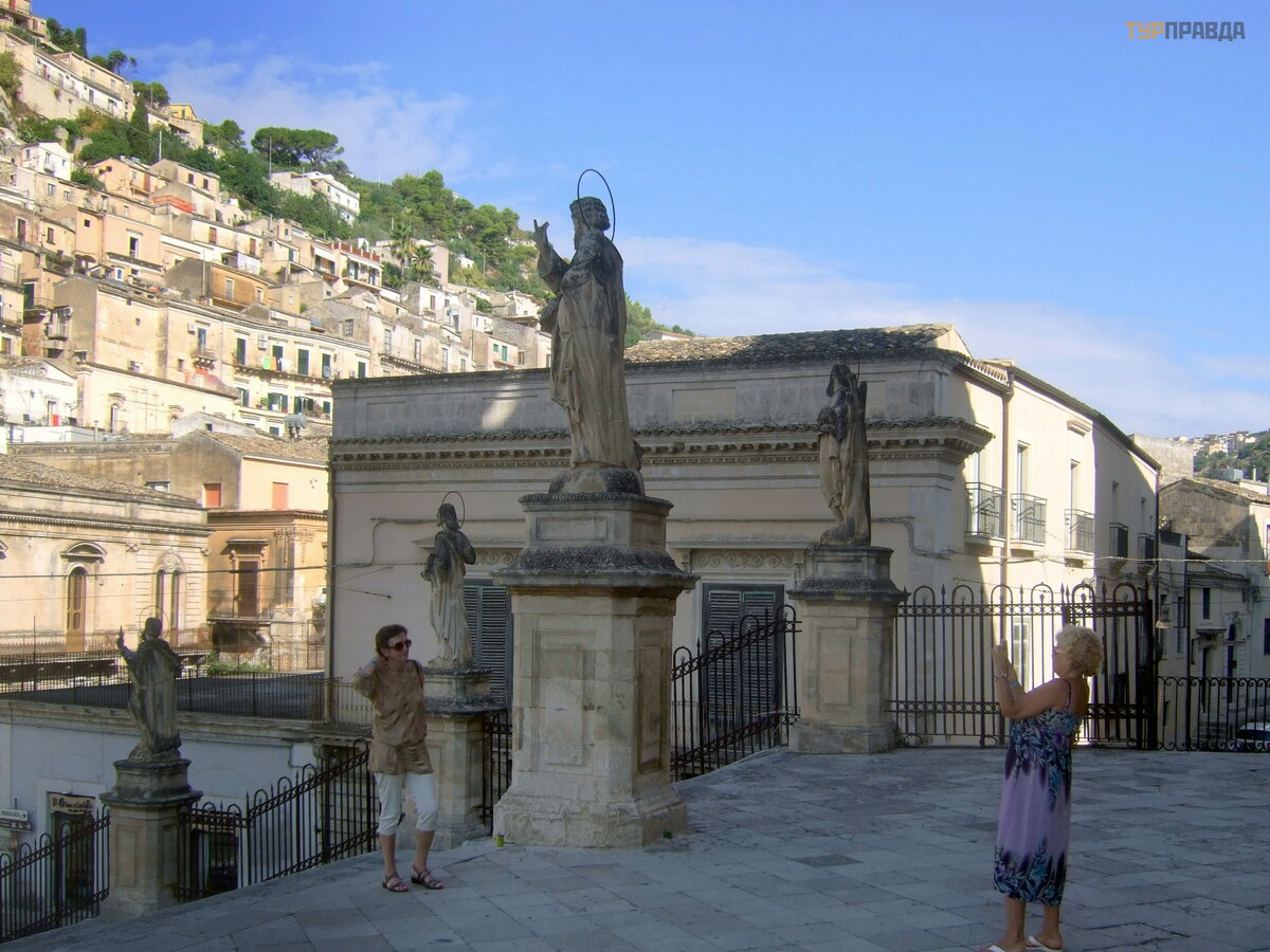 Odwiedziliś my Modicę i Ragusę , wynajmują c samochó d z kierowcą . Wspó ł pracowaliś my z jeszcze dwiema kobietami z naszego hotelu, koleż anką kierowcy, namó wił nas przewodnik hotelowy. Cena emisji to 200 euro za sześ ć godzin. Wyszliś my z hotelu zaraz po ś niadaniu, aby mieć czas na obejrzenie koś cioł ó w przed sjestą .