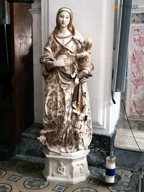 Marmurowy posą g Madonny della Mazza, wykonany w 1507 roku przez Giorgio Brigno, jest ró wnież uważ any za bardzo cenny. Figura stoi w kaplicy Niepokalanej Dziewicy, któ ra szczę ś liwie ocalał a po trzę sieniu ziemi.