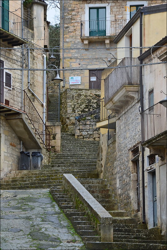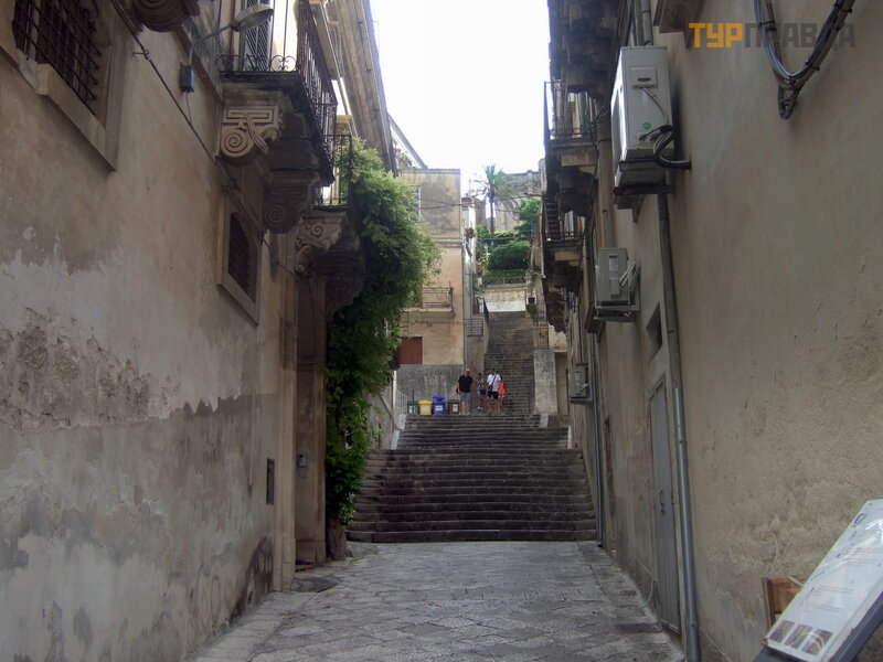 Modica Alta poł oż ona jest na wzgó rzu o wysokoś ci 150 m. Dlatego ulice co jakiś czas zamieniają się w schody.