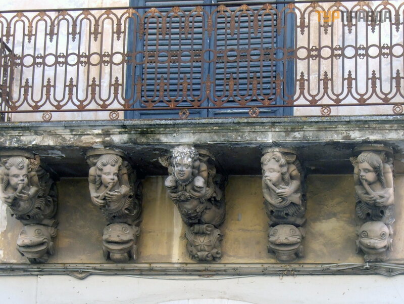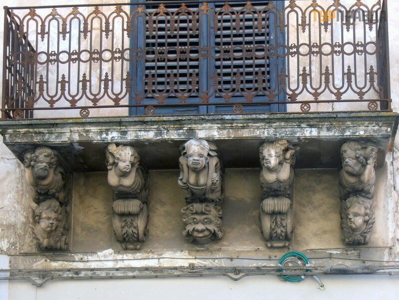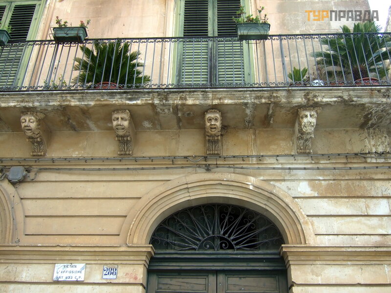 Każ dy dom z monogramami, masywne drewniane drzwi w luksusowej ł ukowej ramie, z ciekawymi balkonami wspartymi na wyszczerzonych maskach, charakterystyczną cechą sycylijskiego baroku.