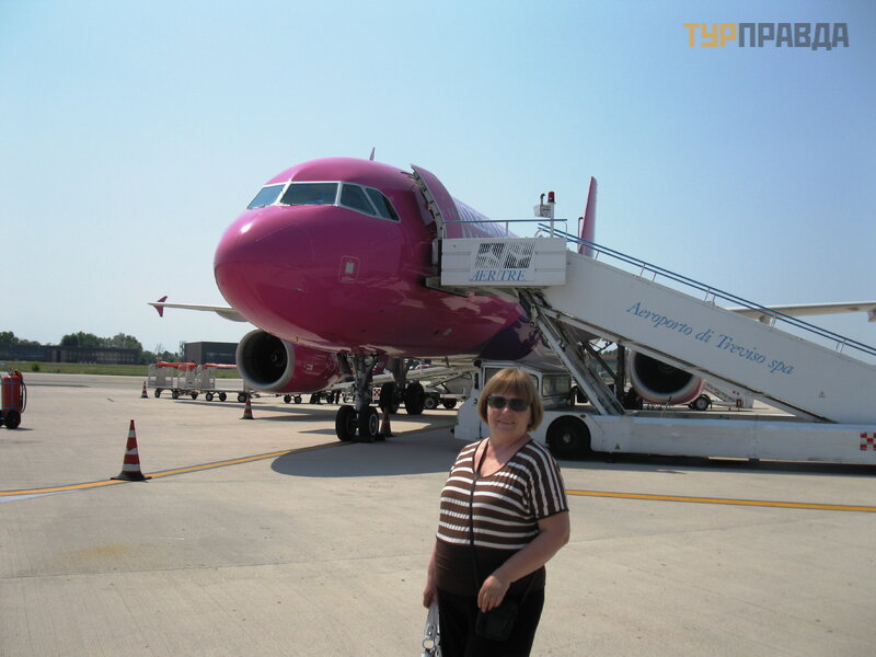 Lot trwa dwie godziny, a już Treviso. Kolejka na granicy mija szybko, spojrzenie na Ciebie, pieczą tka w paszporcie gratis. Bagaż już czeka, zdemontowany i wyjeż dż a. Sprawdził em wł oskie toalety - idealnie. Idziemy na przystanek autobusowy. Są one ustawione tuż obok stacji.