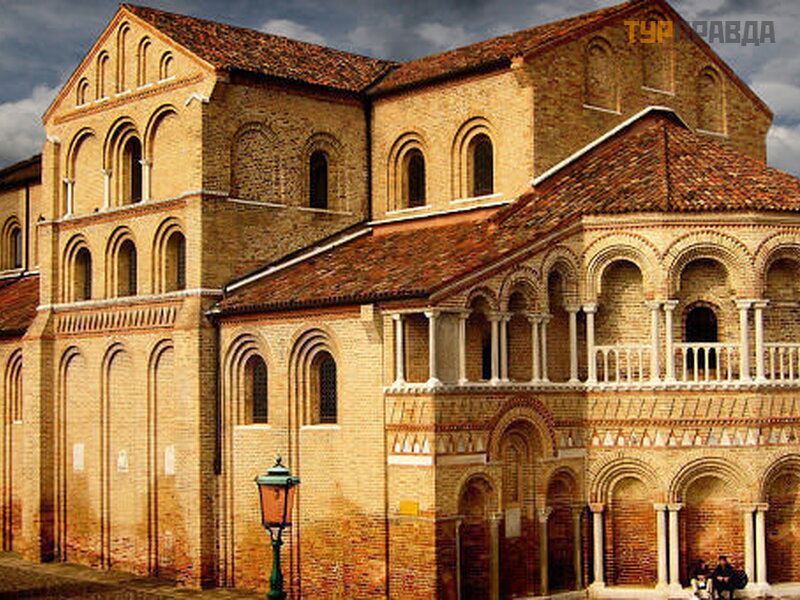 Koś ció ł Santi Maria e Donato jest jednym z najstarszych w lagunie; został zał oż ony w VII wieku, przebudowany okoł o 1100 roku iw tej formie sprowadził się do nas, ale został odrestaurowany zbyt skrupulatnie w XIX wieku. Wewną trz znajduje się prawdziwe Bizancjum: mozaika posadzkowa z XII wieku przedstawiają ca zwierzę ta i ptaki, rzeź bione kapitele i zł ota mozaika przedstawiają ca kruchą Matkę Boską z Oranty. Koś ció ł był poś wię cony Matce Boż ej, ale w XII wieku sprowadzono tu relikwie ś w. Donata, biskupa z wyspy Eubea, wraz z koś ć mi smoka, któ re dzielnie zniszczył (ś wię ty po prostu spluną ł na niego) - te ostatnie, jak trofea, wiszą teraz za oł tarzem.