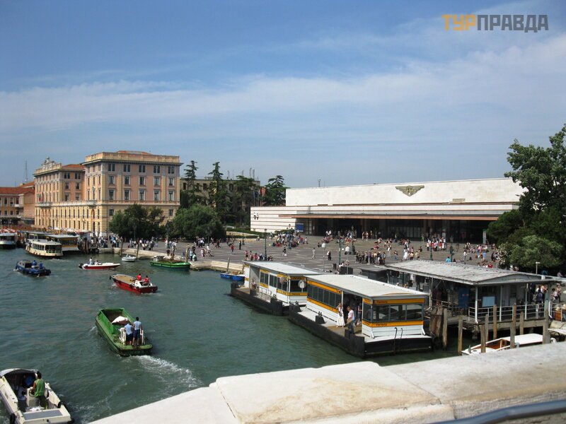Na Piazzale Roma znajdują się przystanie vaporetto i kasy biletowe. Punkt orientacyjny - widok na kanał , miejsca postojowe po lewej stronie.