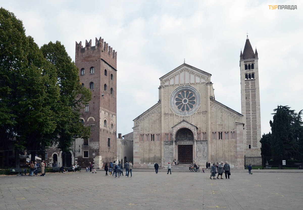 Pierwszy koś ció ł San Zeno (Zeno) Maggiore został zbudowany w V wieku. pod kierunkiem Teodoryka Wielkiego nad grobem ś w. Zenona, patrona Werony i jednego z pierwszych biskupó w miasta.