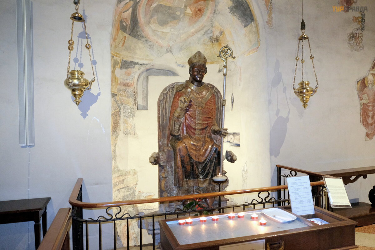 W krypcie Bazyliki, w kryształ owej ś wią tyni, znajdują się relikwie ś w. Zenona: