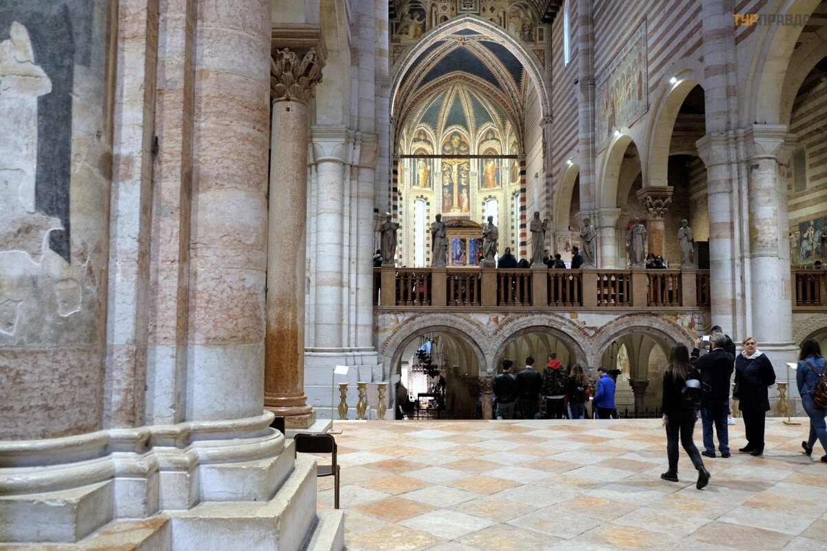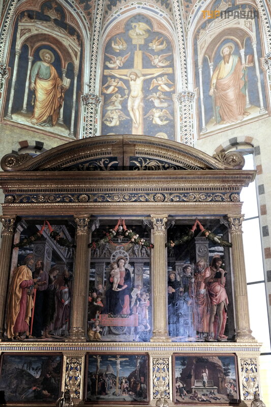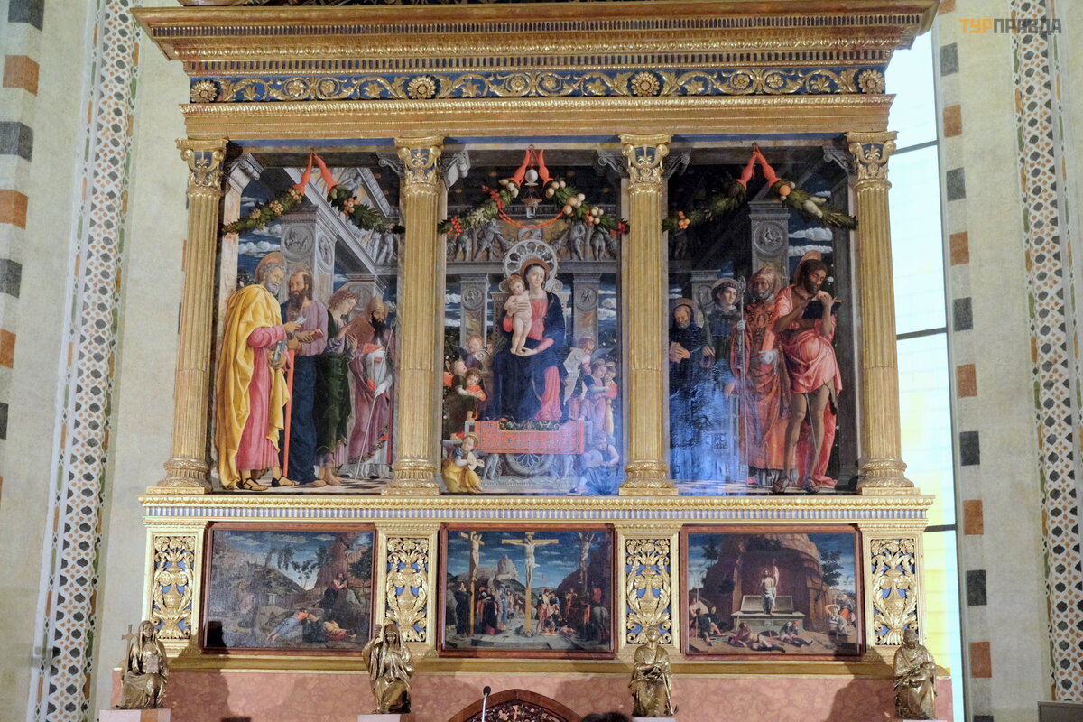 I sł ynny tryptyk Andrei Mantegny „Madonna intronizują ca z anioł ami i ś wię tymi”, nad gł ó wnym oł tarzem bazyliki.