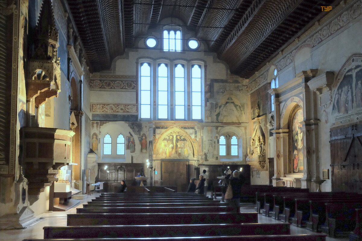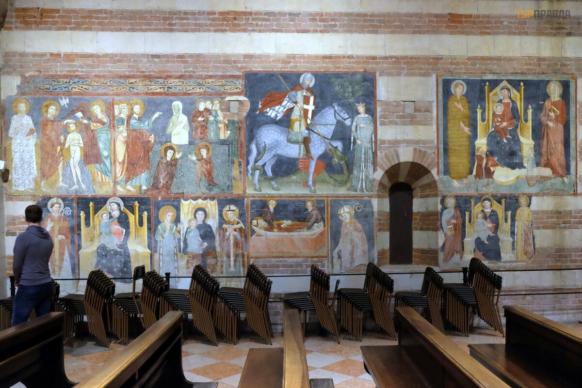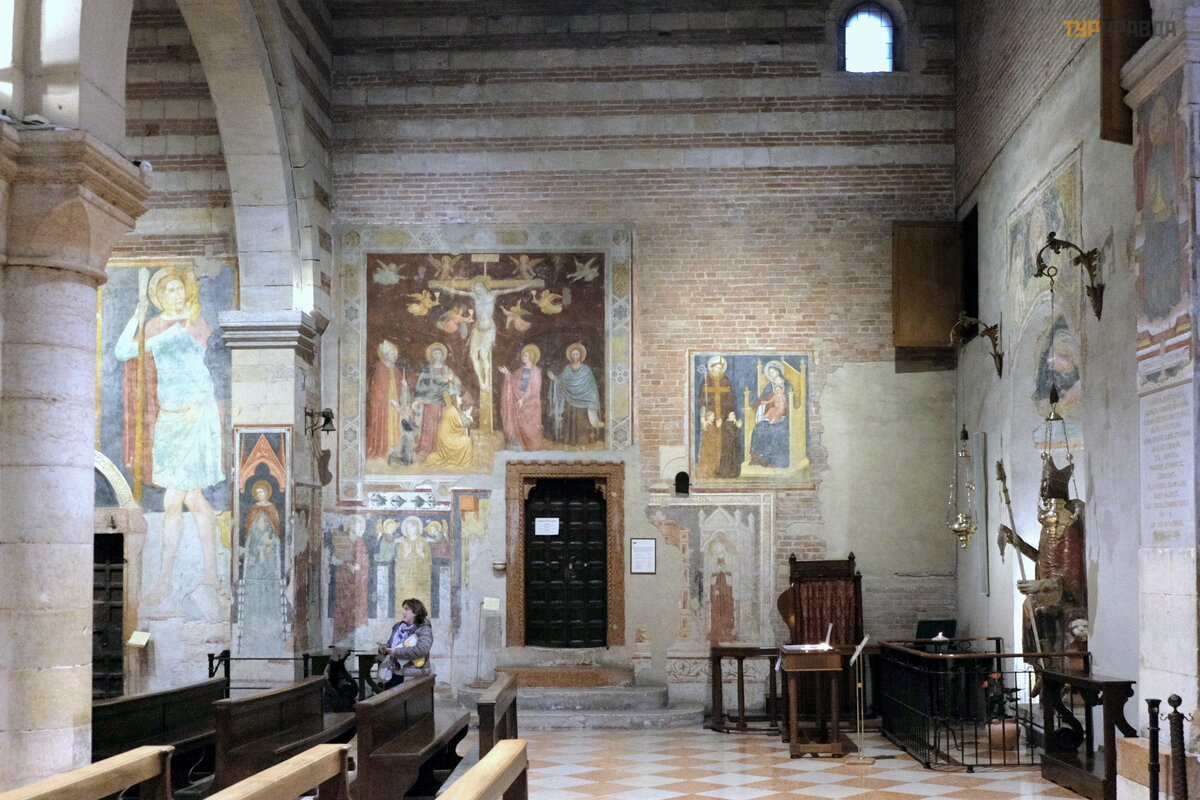 Na ś cianach znajdują się freski z XIII-XIV wieku, powstał e pod wpł ywem Giotta (autorzy są umownie nazywani pierwszym, drugim, trzecim mistrzem San Zeno).