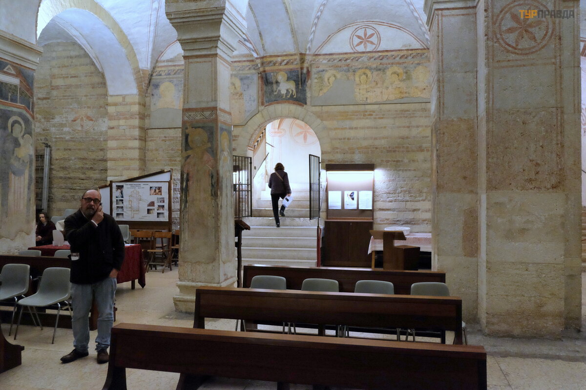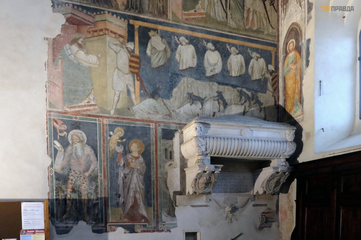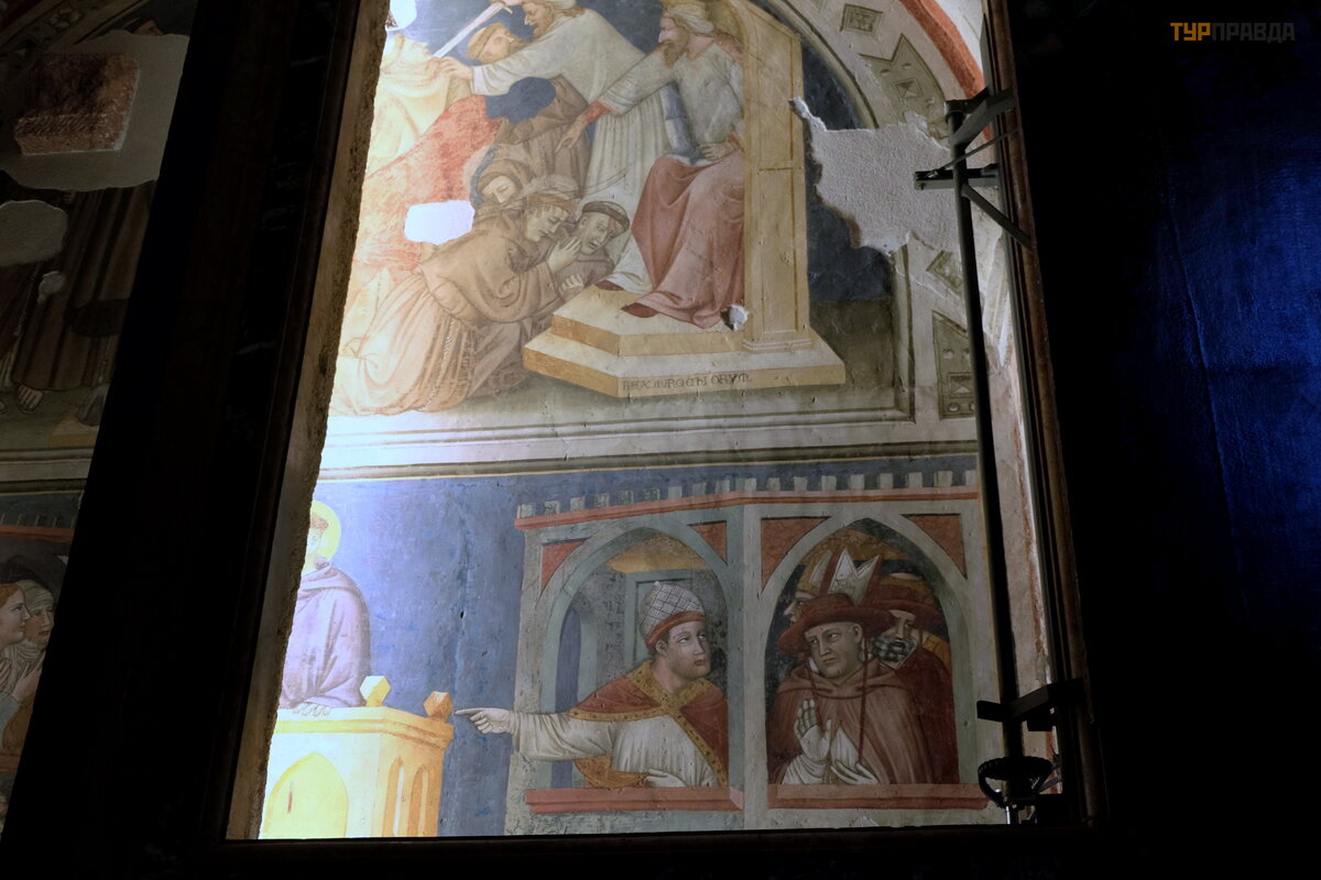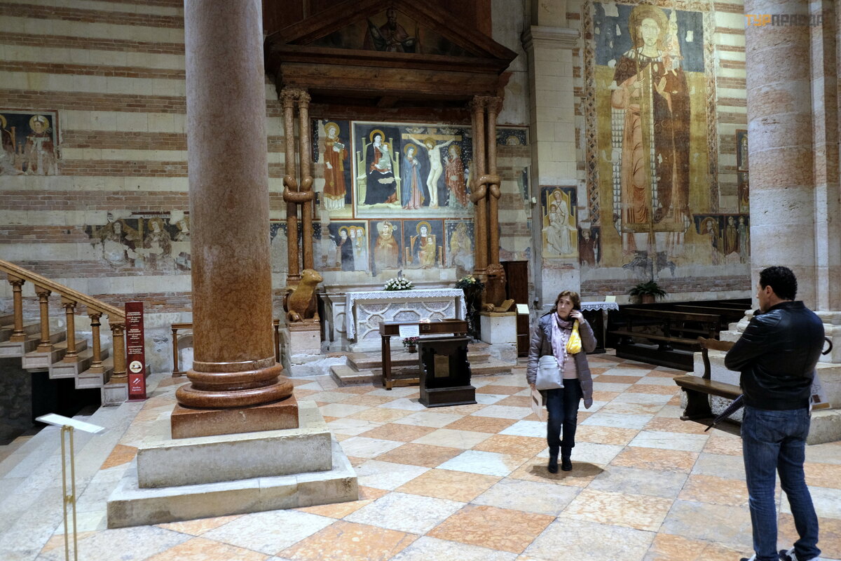 Na ś cianach znajdują się freski z XIII-XIV wieku, powstał e pod wpł ywem Giotta (autorzy są umownie nazywani pierwszym, drugim, trzecim mistrzem San Zeno).