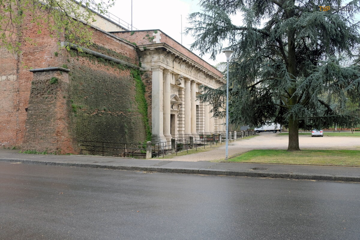 Cechą Porta Palio są ich ró ż ne fasady, zwró cone w stronę miasta ma jeden ł ukowy otwó r, a fasada od strony drogi wykonana jest w formach klasycznych, ma pię ć otworó w, któ re tworzą zadaszoną galerię w gruboś ci bramy.